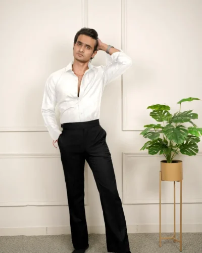 Aceza’s Black Bell Bottom High Waist Trouser | Plain Solid Colour