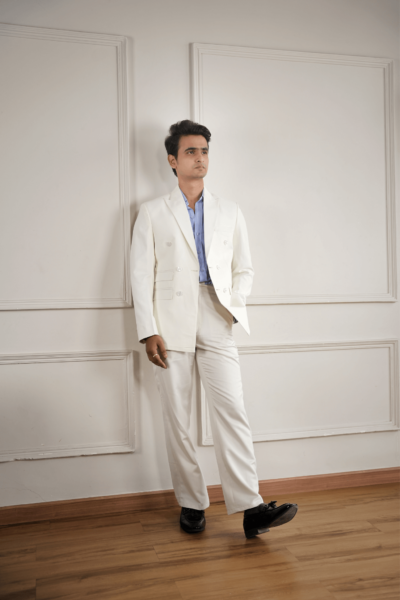Aceza’s Strip Blue Double Breasted Blazer | A Gentlemen Look