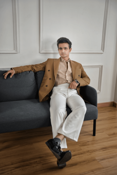 Aceza’s Beige Tailored Jacket | Champagne Fit