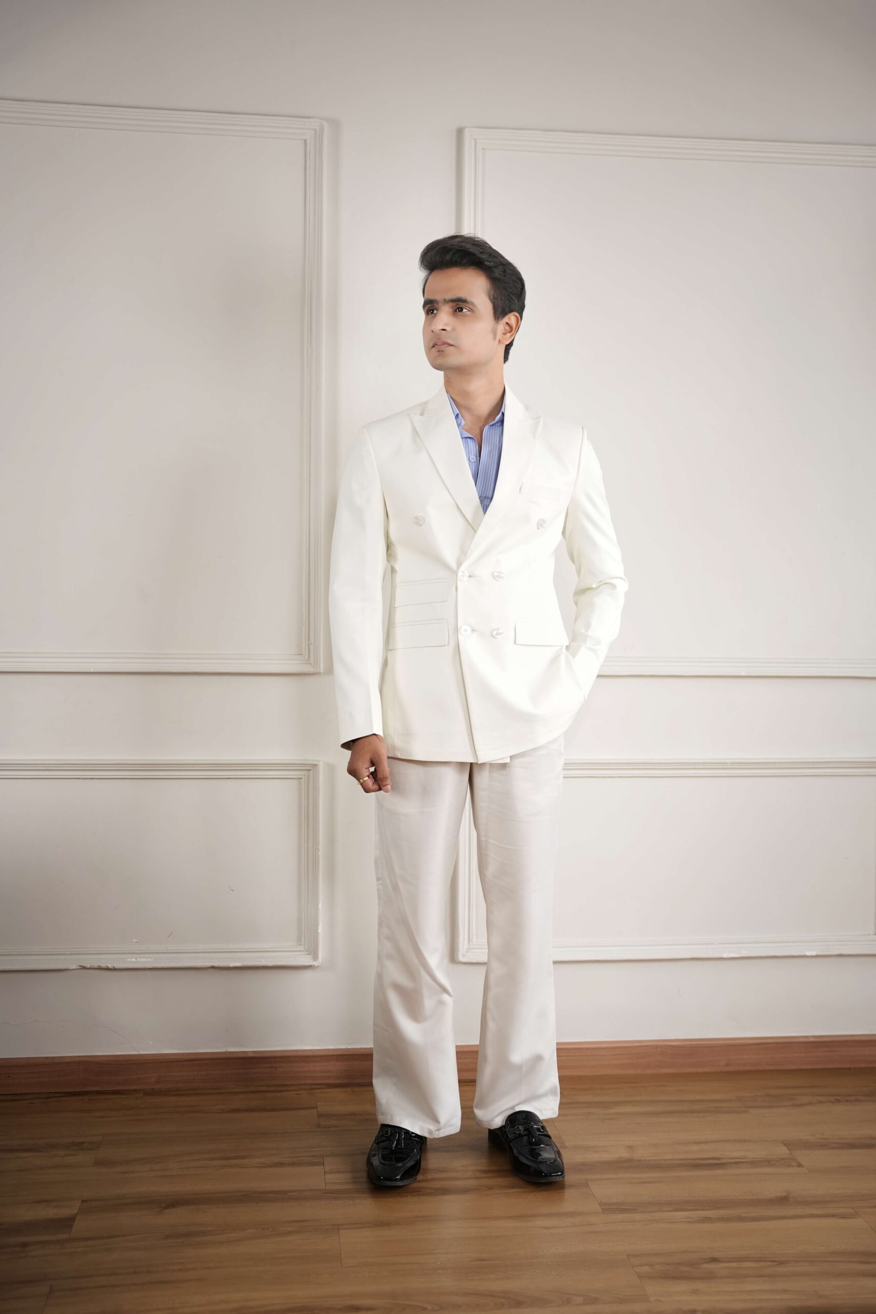 Designed for those who appreciate elegance with an edge, it combines sharp tailoring with versatile styling.